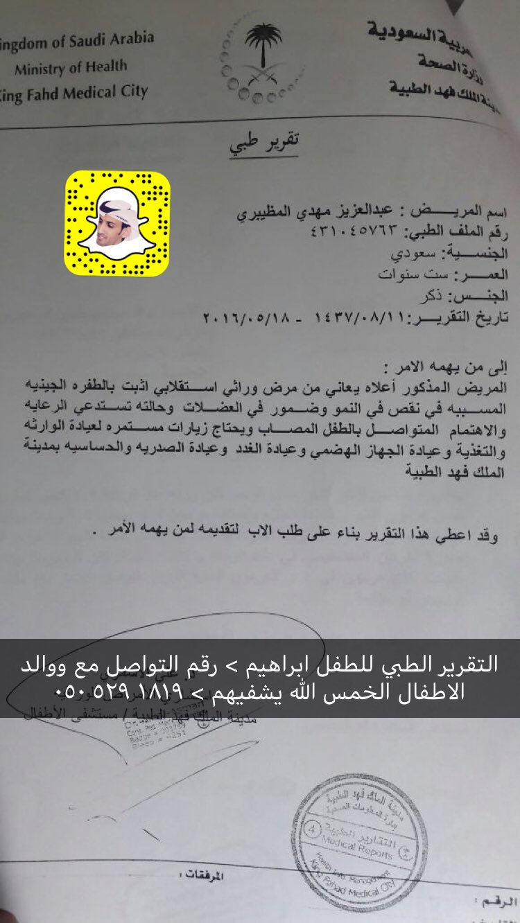 تقرير طبي من مستشفى الملك فهد